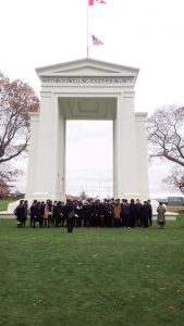 カナダ研修旅行2日目、セントパトリック高校との交流会は、大盛況で終わりました!ピースアーチにも行き、寒い中ホワイトロックも散策しました。