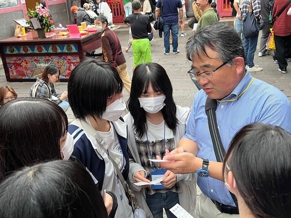 次に見学した龍山寺は台湾で随一のパワースポットであり、大勢の参拝者が境内を埋めていました。生徒達はおみくじを引いたり、御守りをいただいたりと各々の願いの成就を祈念したようです。