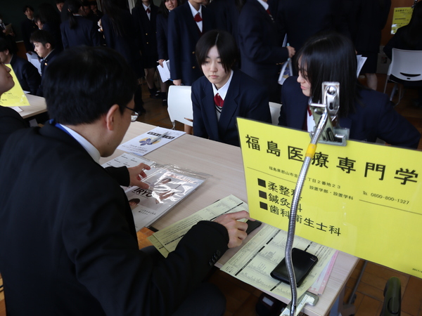 取得できる資格や、卒業後の進路などさまざまな情報を得ることができました。1年生にとっては戸惑いもありましたが、話を聞き進めるごとに真剣な表情に変わっていきました。