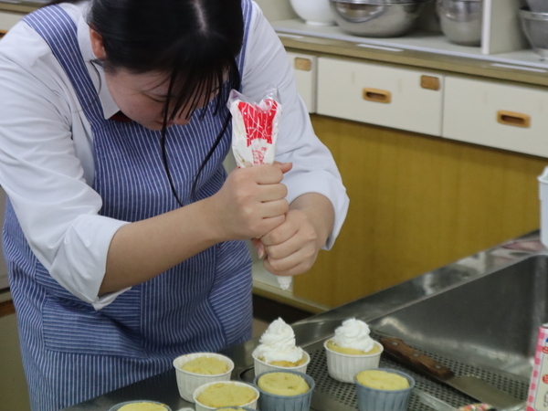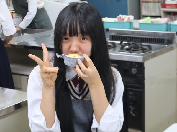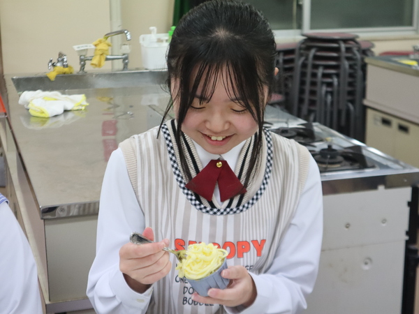 家庭研究クラブが「秋のスイーツ」をテーマに調理実習をおこないました。 班ごとに計画を立て、好きなスイーツを作りました。どの班もとてもおいしくできました。