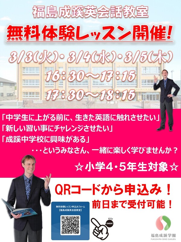 一度、福島成蹊英会話教室を体験してみませんか?