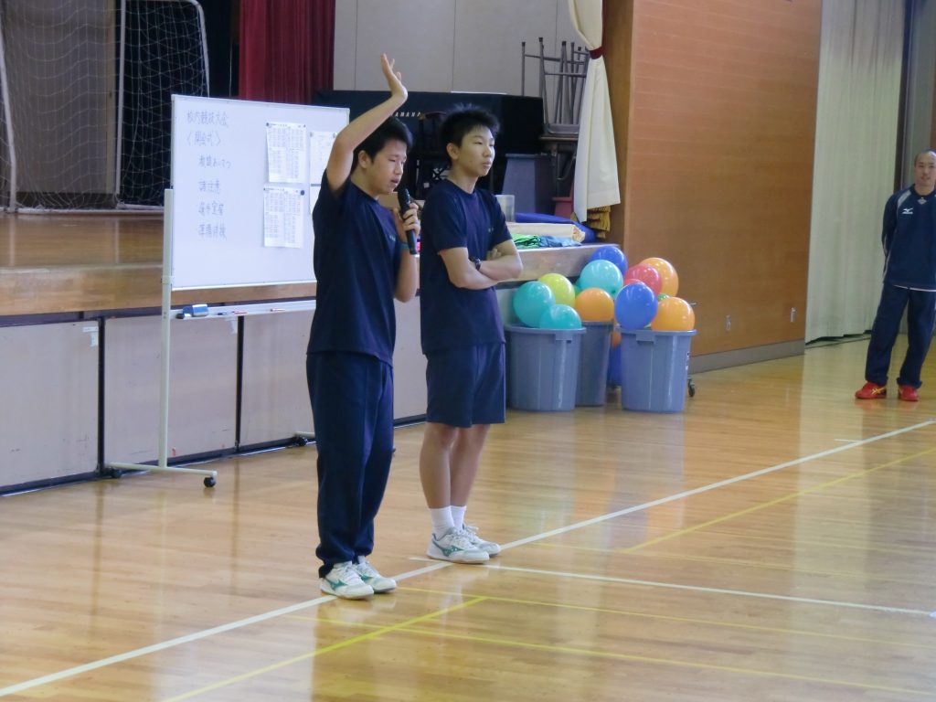 中学生全生徒を紅組、白組でチーム編成し、競技ごとの順位で競い合いました。