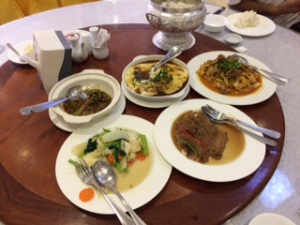 カンボジアの昼食は中華。 全部で8品の料理にフルーツ。食事を心配していた生徒も箸が進み、満足の様子でした。