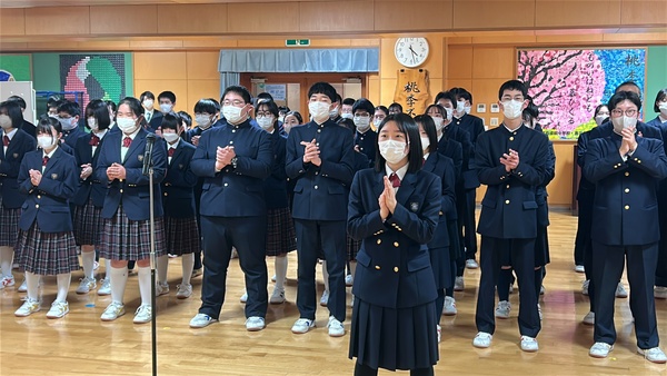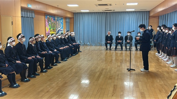 1月15日㈭、腰浜キャンパスで、受験に臨む高校3年生を激励する「中高一貫コース 出陣式」が厳粛におこなわれました。