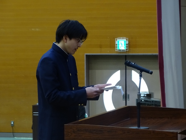 同窓会長、校長よりお祝いのことばをいただいた後、生徒代表からはお礼の言葉が述べられました。