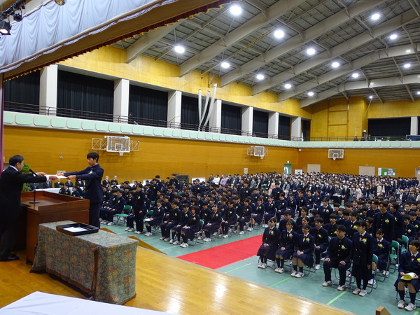表彰は、全体の学業最優秀者に「日本私立中学校高等学校連合会長賞」、コースの最優秀者に「桃李賞」、無欠席の生徒に「皆勤賞」、クラブ活動、また個人で全国レベルの活躍をした生徒に「功労賞」が贈られました。
