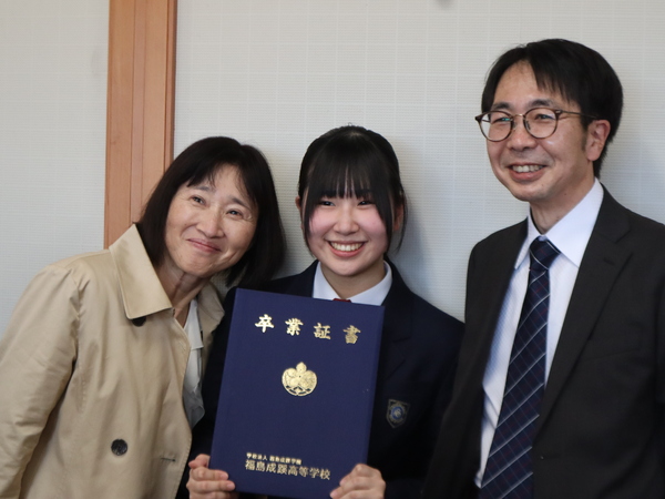 卒業生代表の田中瑚音さんは「社会がどれほど変化し、困難が待ち受けていようとも、この三年間仲間とともに多くのことを学び、経験し、数々の壁を乗り越えてきた私たちならきっと大丈夫です。福島成蹊高校で学んだ自分自身を信じて、挑戦を恐れずに進み続けましょう。」と答辞を述べました。
