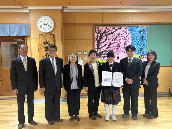 中学2年の佐久間愛さんが「社会を明るくする運動『青少年からのメッセージ』」で優秀賞を受賞しました。 法務省が行う「“社会を明るくする運動”~犯罪や非行を防止し...